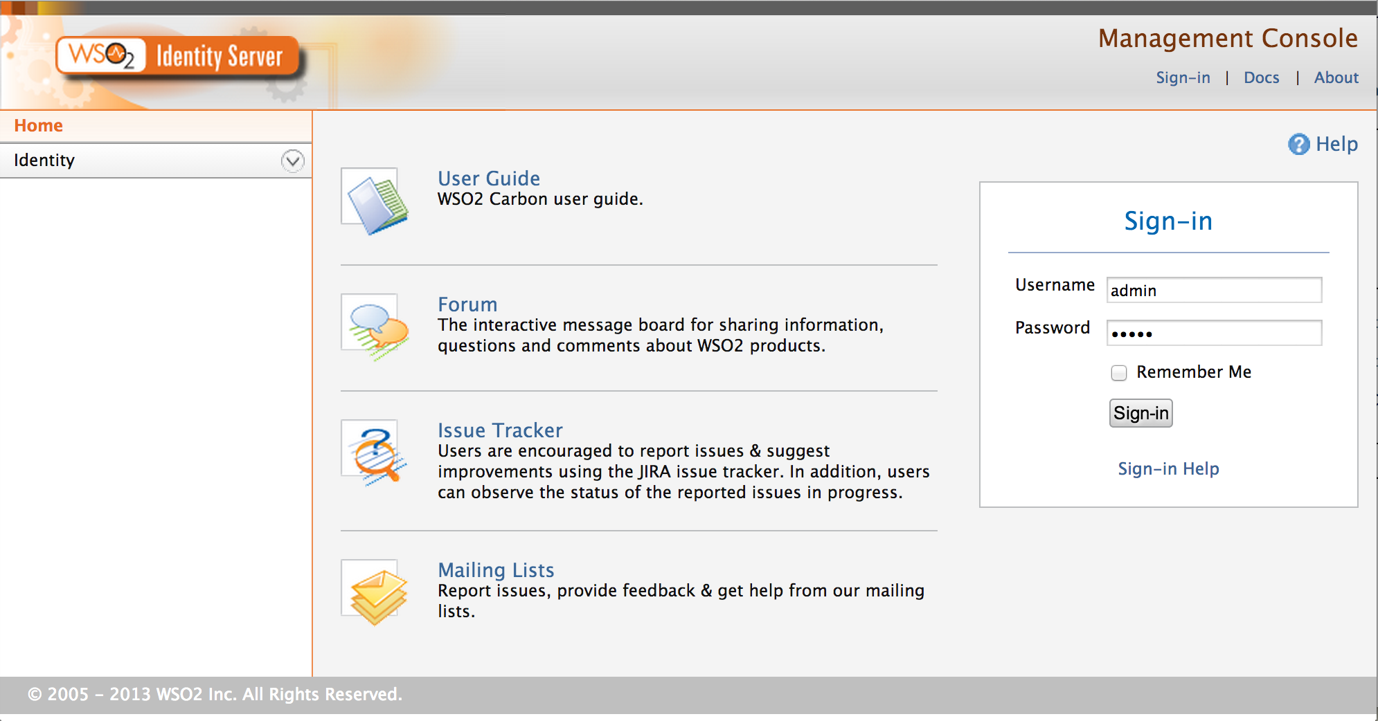 Now that you have a running WSO2 Identity Server, let's login and do a quick check on it.